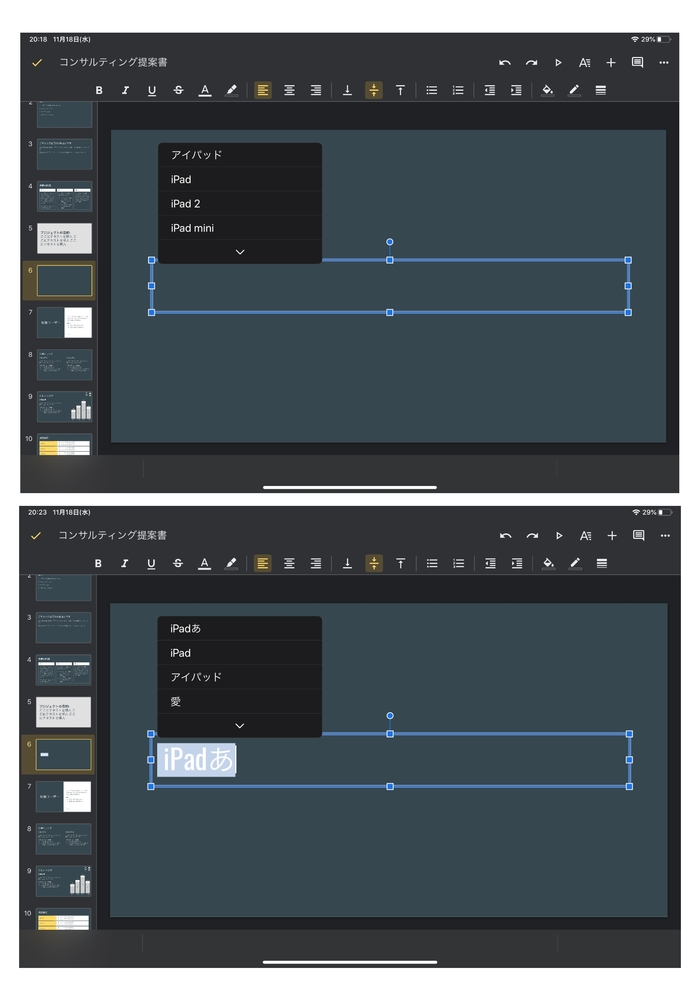 Ipadでgoogleスライドを作成する際 文字を消しても予測変換機 Yahoo 知恵袋